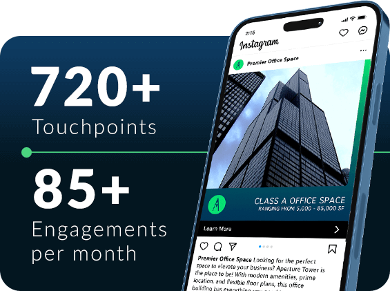 After integrating AI-driven targeting with their CRM, the team launched sustained outreach to leadership at a large corporate tenant evaluating office options. By maintaining continuous engagement across every stage of the leasing journey, the strategy ensured decision-makers were consistently educated on the asset’s value, amenities, and long-term advantages.